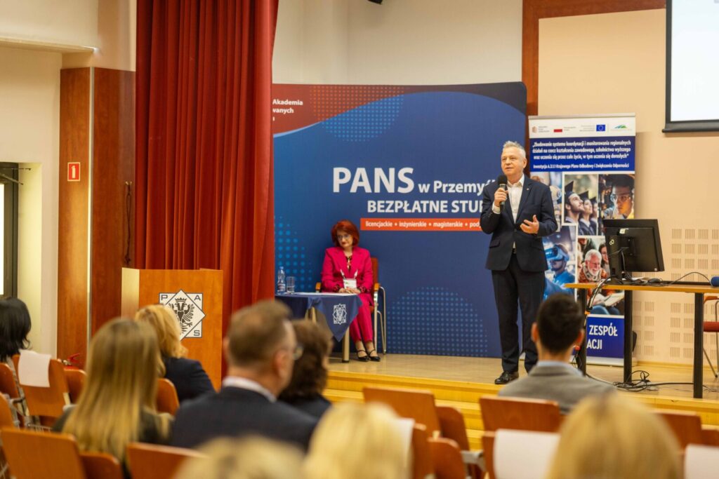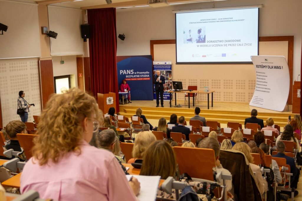15 kwietnia 202615 kwietnia 2026 r. w uczelnianej auli odbyła się konferencja zorganizowana przez Wojewódzki Urząd Pracy w Rzeszowie oraz Powiatowy Urząd Pracy w Przemyślu, którym uczelnia udzieliła wsparcia podczas organizacji wydarzenia. Celem spotkania, w którym udział wzięli przedstawiciele kadry zarządzającej placówek oświatowych, nauczyciele, doradcy zawodowi, była refleksja nad rolą doradztwa zawodowego w nowym modelu uczenia się przez całe życie.