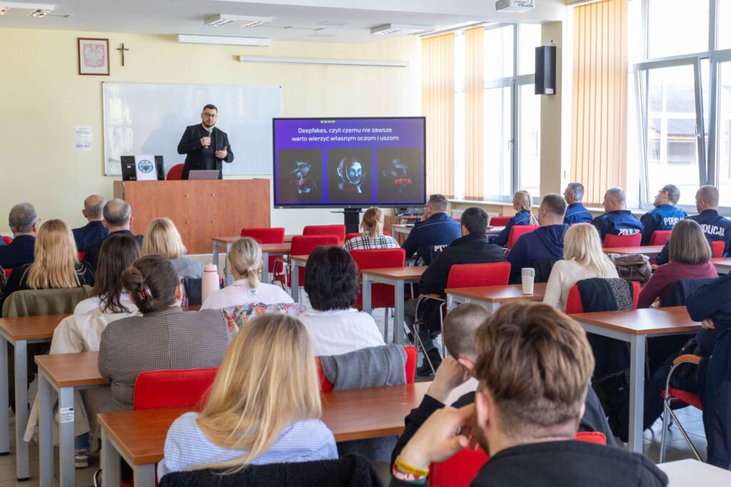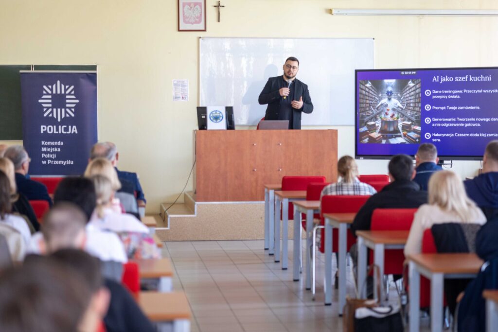 15 kwietnia 2026Zagadnienia związane ze sztuczną inteligencją nie są już wyłącznie rozważaniami o przyszłości – to rzeczywistość, z którą mierzymy się tu i teraz, dlatego tak ważna jest rola edukacji i profilaktyki w budowaniu bezpiecznej cyfrowej przestrzeni. To właśnie te potrzeby stały się impulsem do organizacji spotkania profilaktycznego pt. „Sztuczna inteligencja: szanse czy nowe oblicze zagrożeń w Internecie?”. Wydarzenie, przygotowane przez Komendę Miejską Policji w Przemyślu, odbyło się 15 kwietnia br. w murach Państwowej Akademii Nauk Stosowanych w Przemyślu.