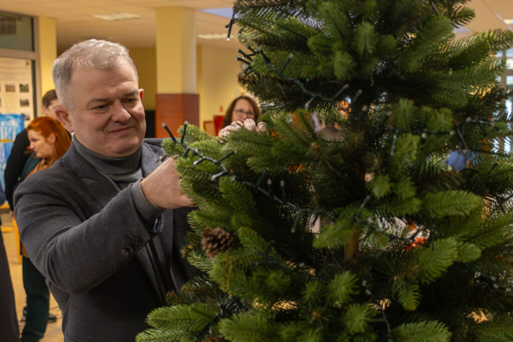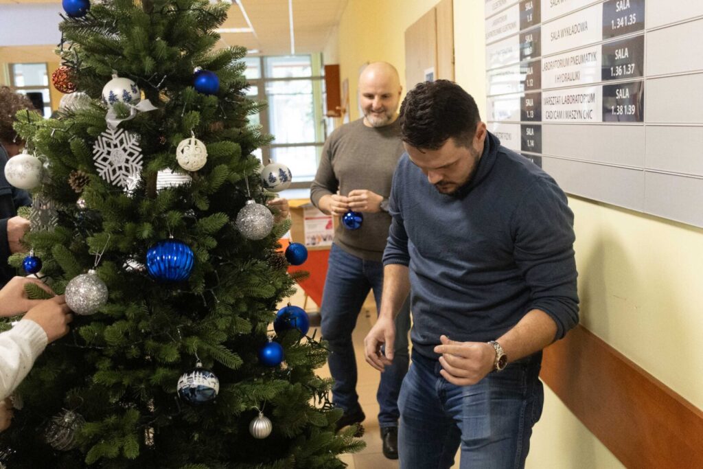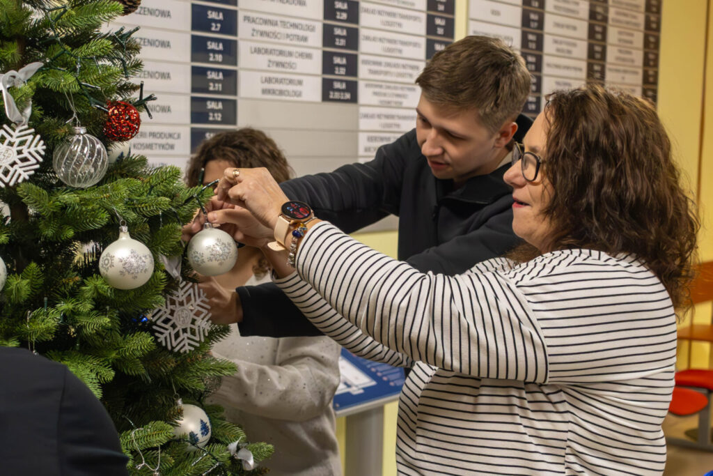 1 grudnia 2025Pracownicy i studenci naszej Uczelni spotkali się dziś, aby wspólnie ubrać choinkę – tym samym otwierając czas grudniowych przygotowań do Świąt Bożego Narodzenia. W swobodnej, nieformalnej atmosferze mogliśmy przypomnieć sobie, że uczelnia to nie tylko miejsce pracy i nauki, ale także przestrzeń sprzyjająca budowaniu przyjaznych relacji. Nasza choinka udowadnia, że współpraca jest najlepszą ozdobą!